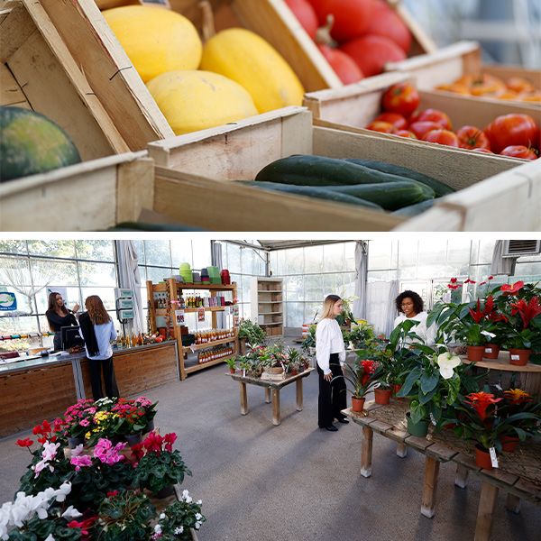 - Espace de vente directe (serre chaude, marché aux fleurs, pépinière) avec conseils assurés par les apprenants